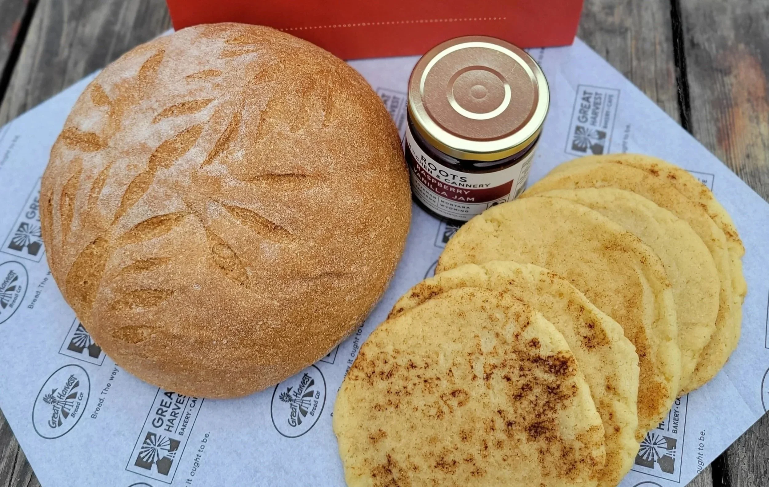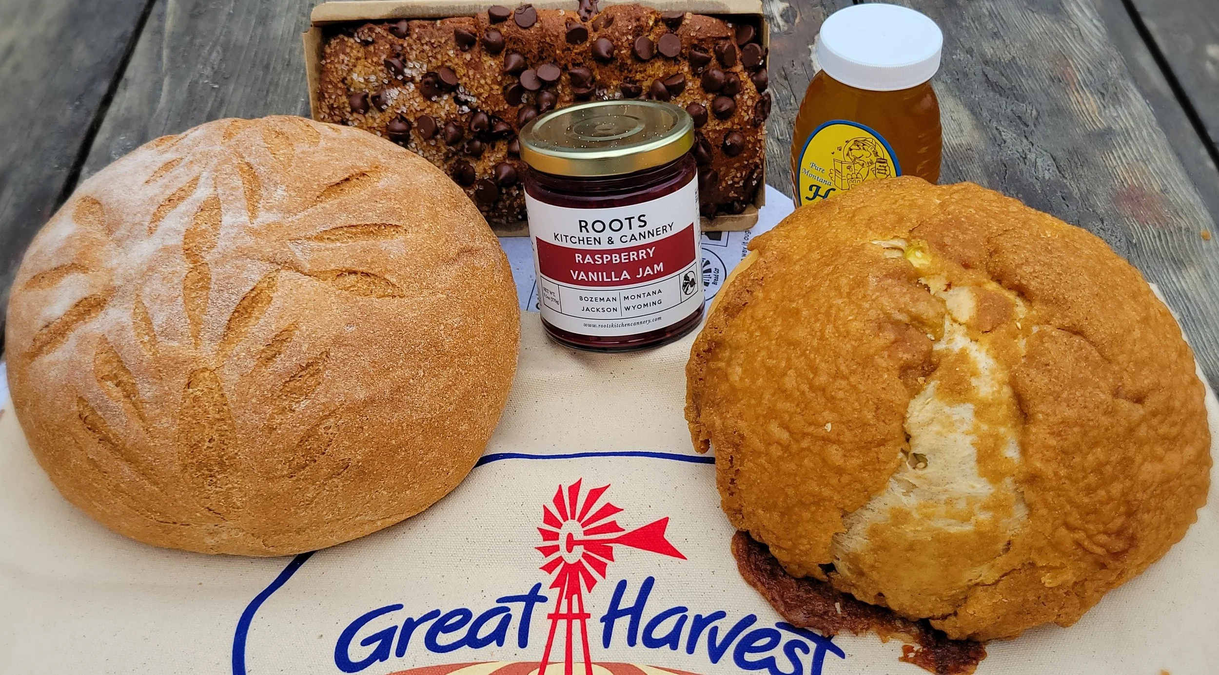 Here at Great Harvest we like to shop local. Our gifts loaded with handcrafted breads and sweets made in store, as well as other amazing local treats!