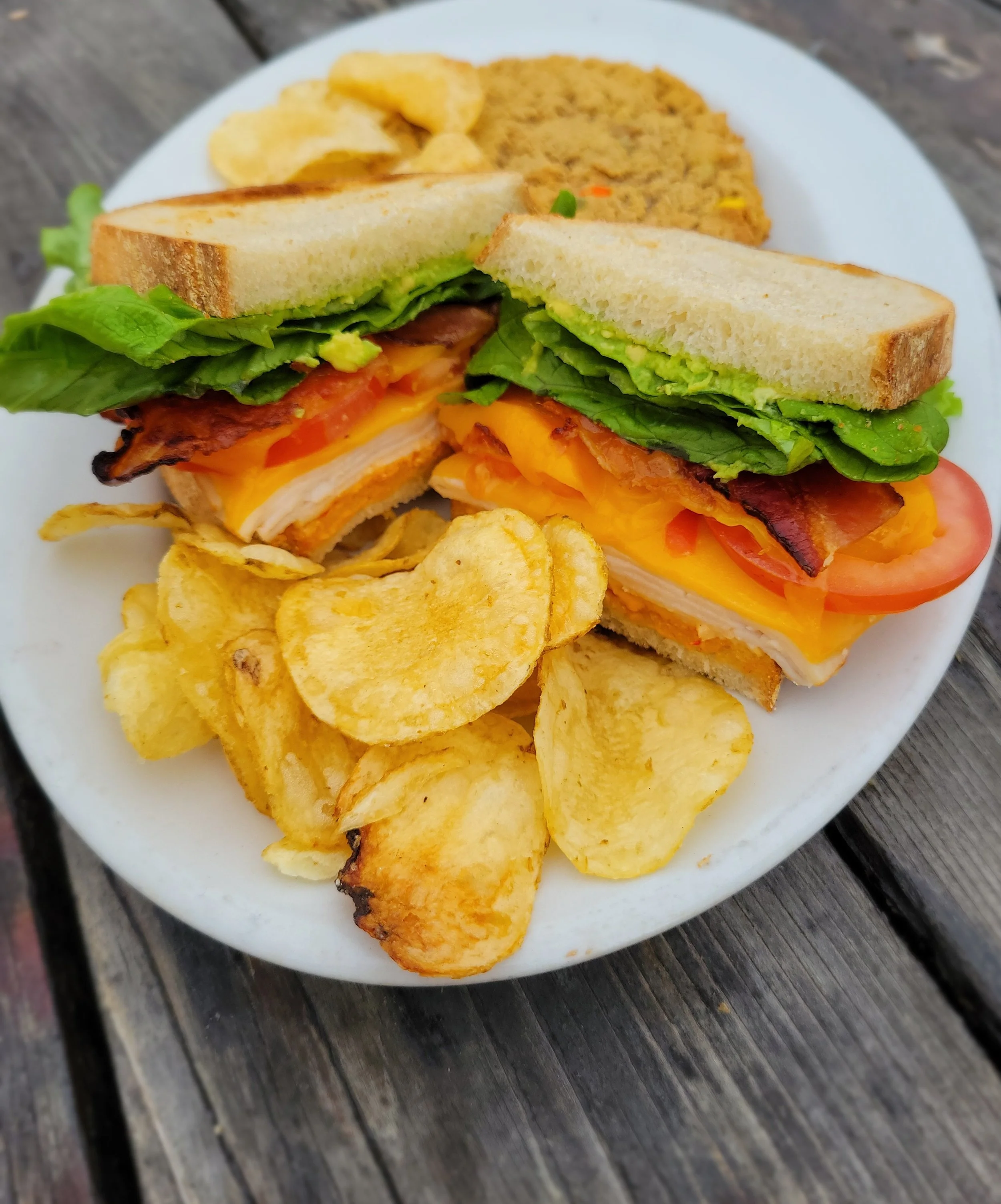 LAURIE'S B.L.T.T - bacon strips, roasted turkey breast, romaine lettuce, tomatoes, cheddar cheese, guacamole and chipotle mayo