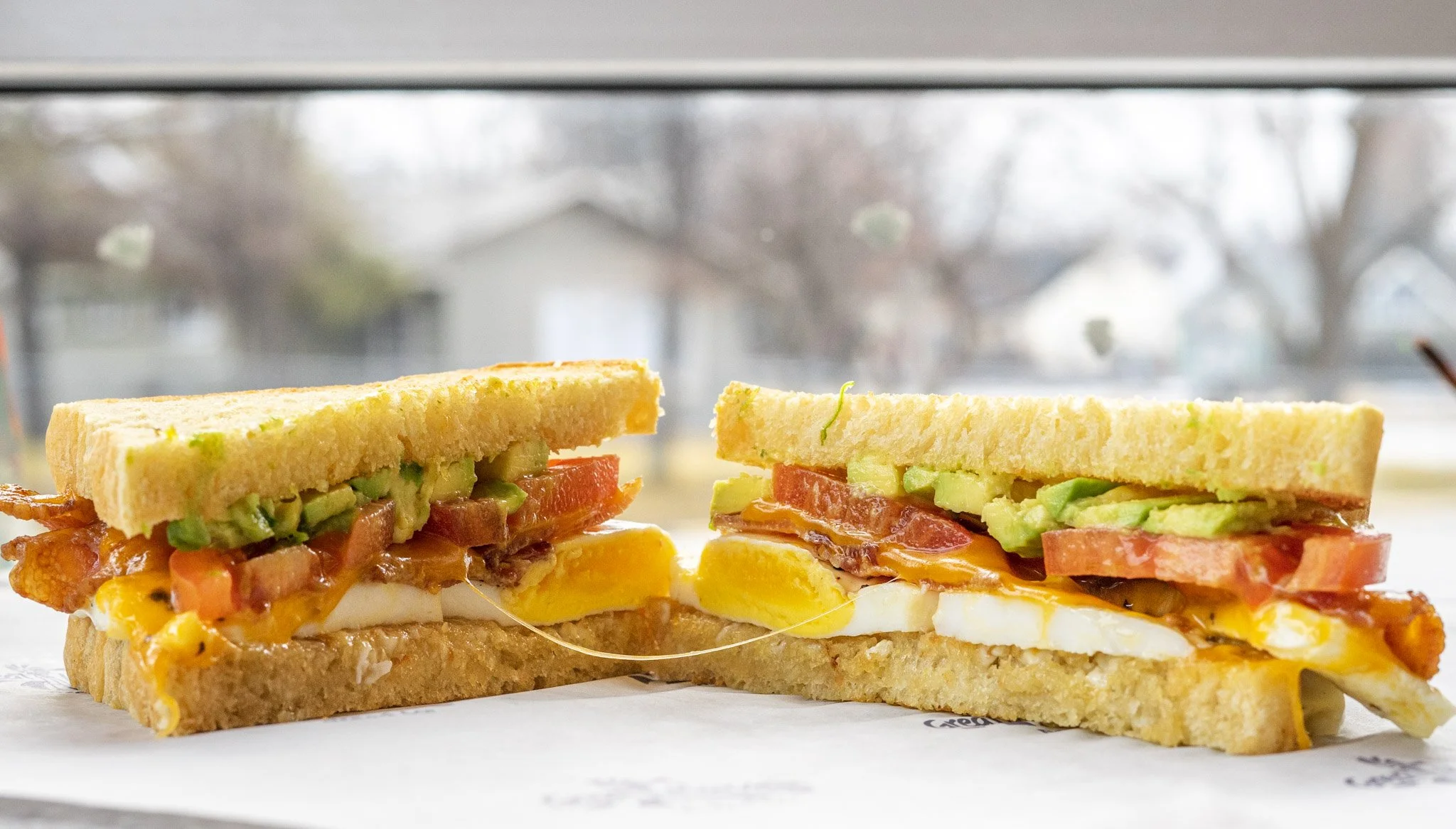 Two eggs, three slices of bacon, cheddar and mayo served toasted on your choice of bread. Add avocado or tomatoes for $1